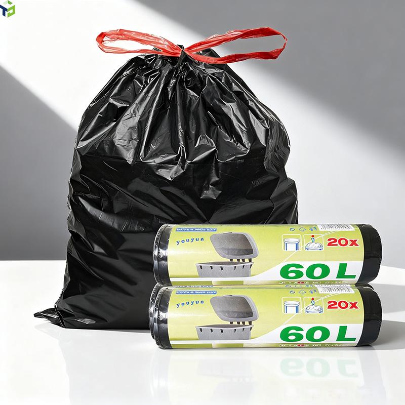 13 Gallon Black Heavy Duty HDPE Trash Bags with Drawstring