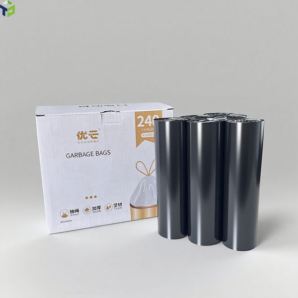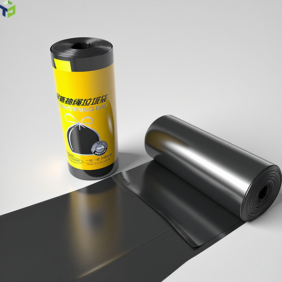Tear-free black 17.7*19.6inch drawstring garbage bag