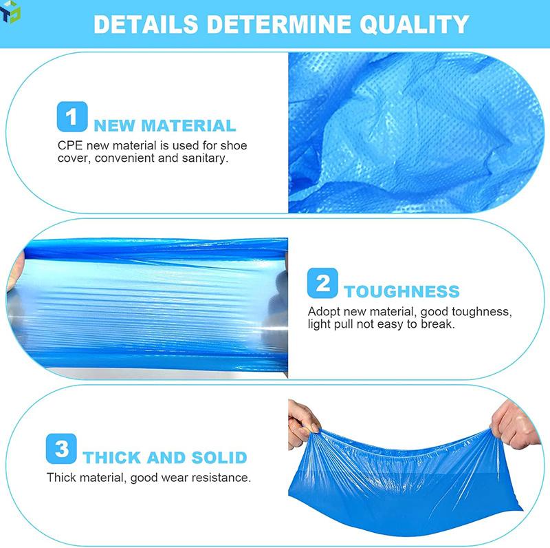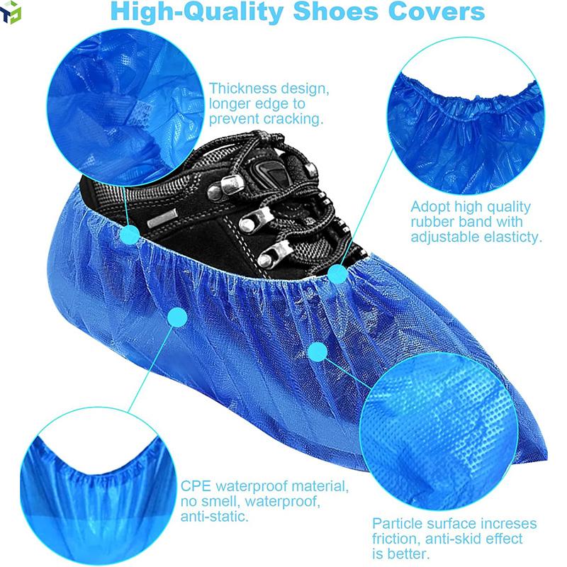 HIGH-QUALITY MATERIALS: Disposable shoe covers using high-quality & extra thick & strong & long-lasting CPE materials, surface non-slip particle design, waterproof, non-slip and tear resistant