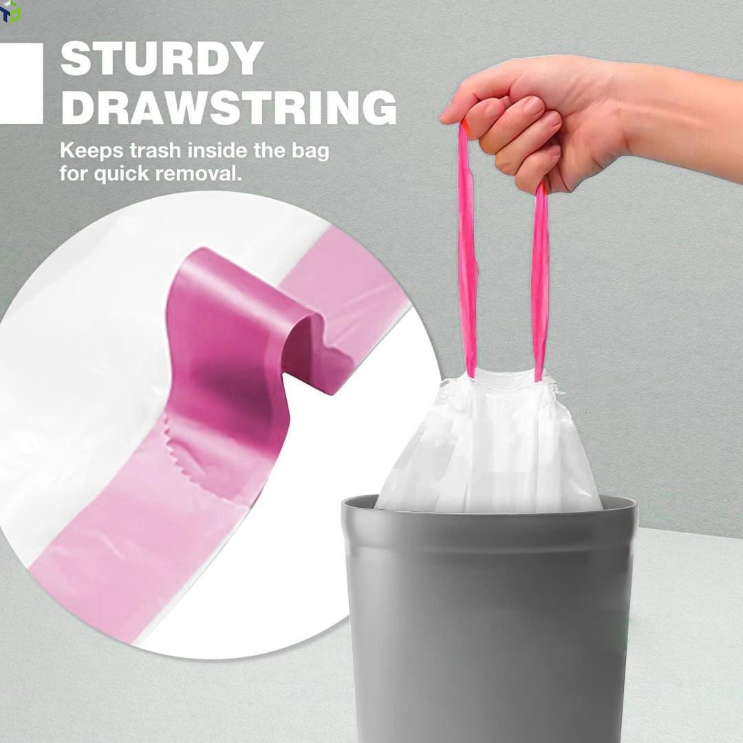 [Convenient Drawstring] The handy drawstrings on both sides of the bag allows for easy closure and removal of the garbage. The drawstrings grip the bin rim tightly without sliding down and effectively seal the bag, trapping any unpleasant smells