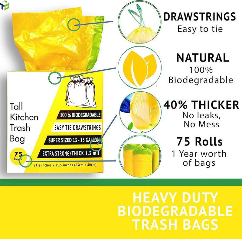 SPACIOUS CAPACITY: With a spacious size, our 13-gallon drawstring trash bags provide ample room for waste, making it easy to manage household trash